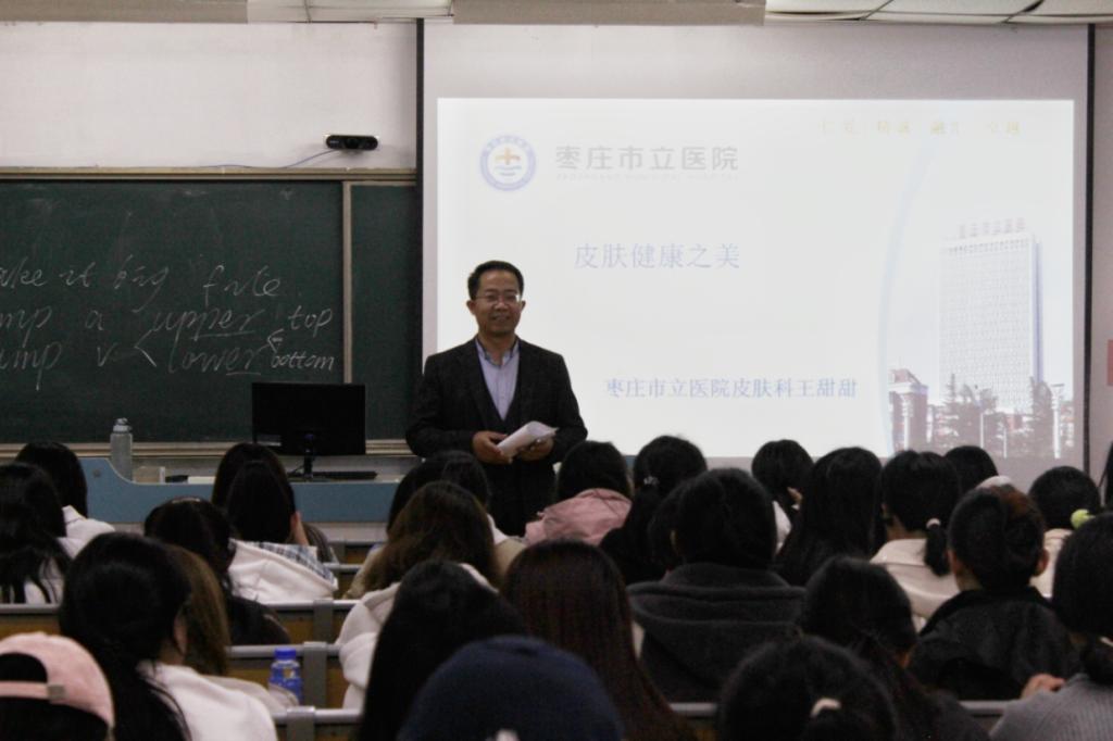 为切实关注大学生身心健康,普及皮肤健康知识,引导学子树立科学护肤观念,11月3日下午,BBIN宝盈集团在多媒体楼106教室举办了一场以“皮肤健康之美”为主题的专题讲座。本次讲座特别邀请了枣庄市立医院皮肤科副主任医师王甜甜博士担任主讲嘉宾,吸引了近百名学生积极参与。此次讲座由学院党委副书记黄成亮主持。