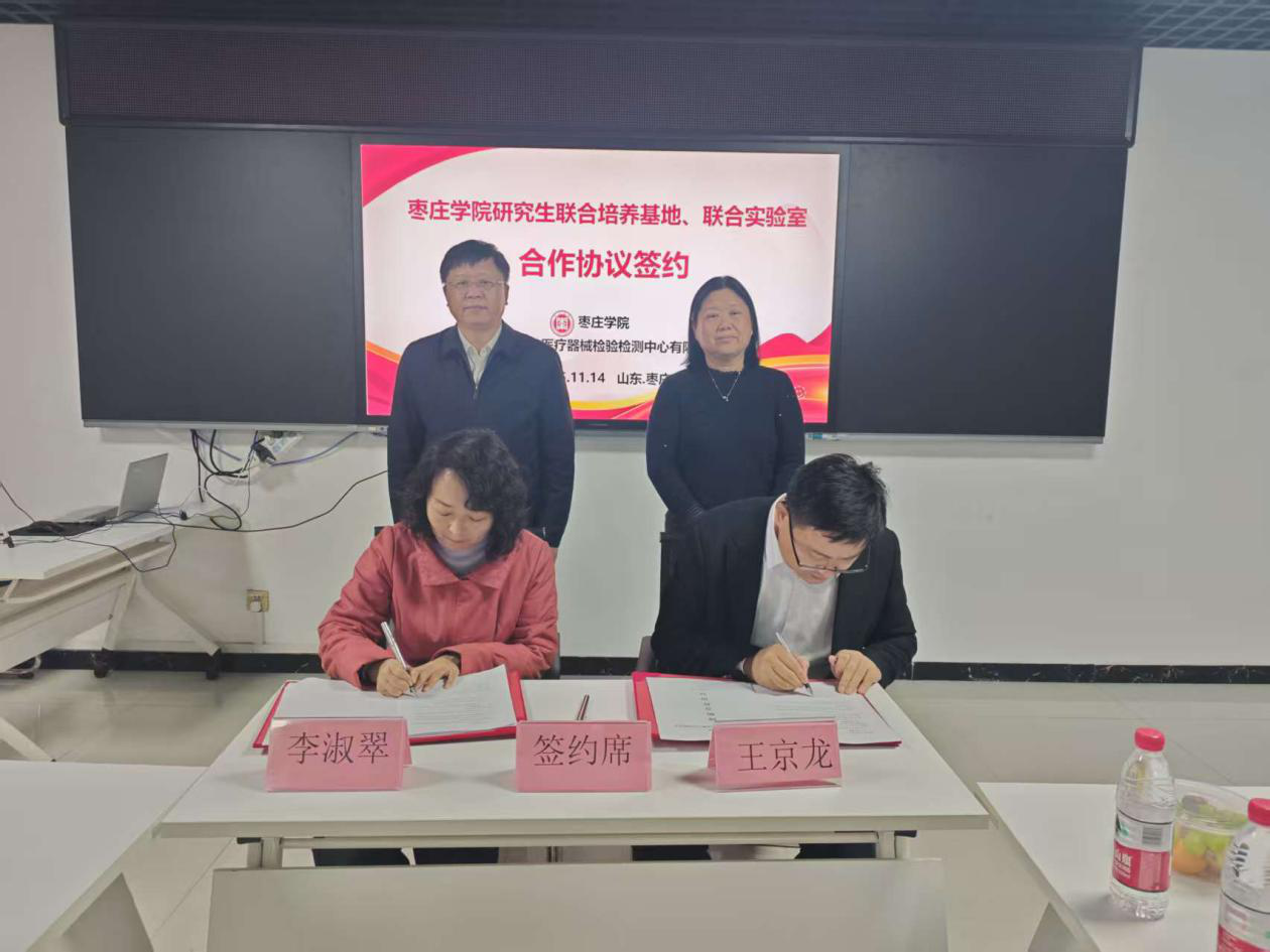 2025年11月14日下午,由BBIN宝盈集团与山东邦众医疗器械检验检测中心有限公司联合主办的“大健康产业学术沙龙暨BBIN宝盈集团研究生联合培养基地、联合实验室揭牌仪式”在枣庄高新区新医药产业园综合办公楼三楼会议室隆重举行。校党委委员、副校长李目海,山东邦众总经理李淑翠出席活动。我校BBIN宝盈集团院长王京龙、健康工程技术研究院院长韦德泉和部分教师代表参加活动。