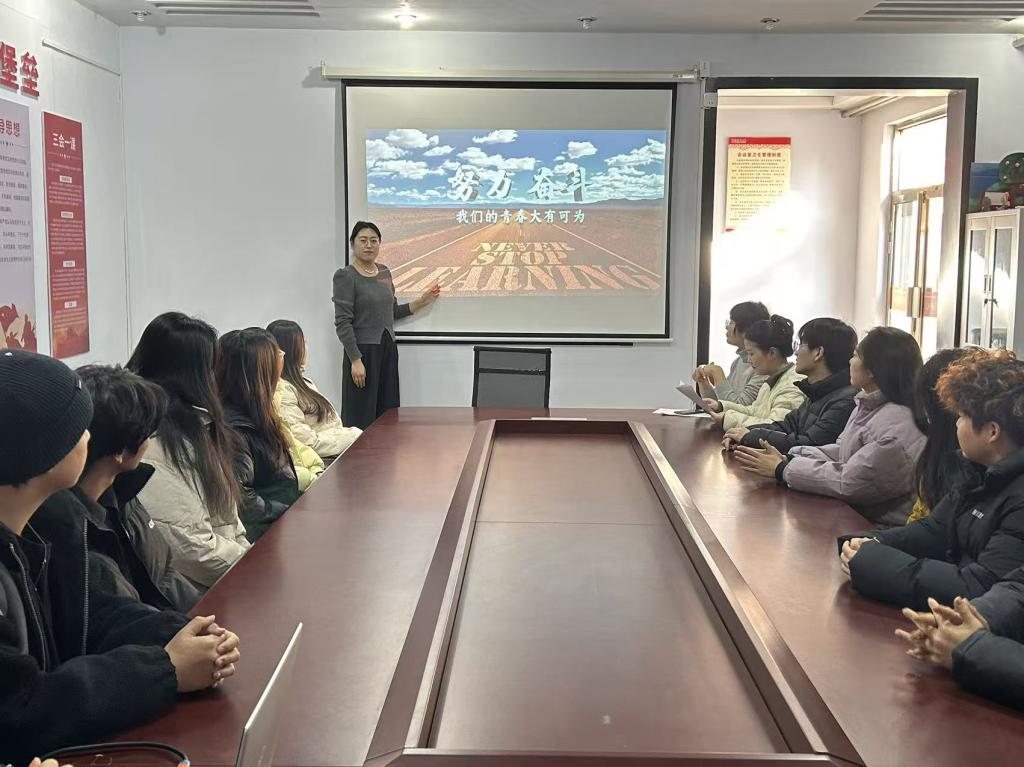 为引导青年学子坚定理想信念,激发奋斗热情,4月9日,BBIN宝盈集团在12 号宿舍楼会议室开展了一场主题为“努力奋斗,我们的青春大有可为”的青春励志讲座。本次讲座由辅导员李鑫宇主讲,各班团支书与心理委员到场聆听。