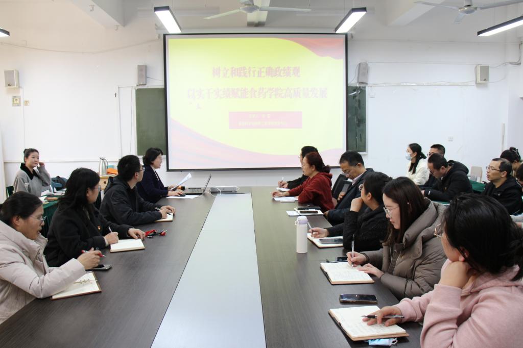 结合学院学科特色,华莹书记将正确政绩观与中心工作深度融合,指出学院政绩重在育人成效、科研突破和服务贡献。人才培养上,深化教改、推进专业认证,强化实践与创新创业教育,培养具备工匠精神的卓越工程技术人才;学科建设上,锚定硕士点建设目标,深耕石榴精深加工、生物医药等特色领域;科研创新上,坚持产学研融合,推动成果转化,助力区域产业发展;师生服务上,聚焦急难愁盼,优化保障、强化帮扶,以师生获得感检验政绩。