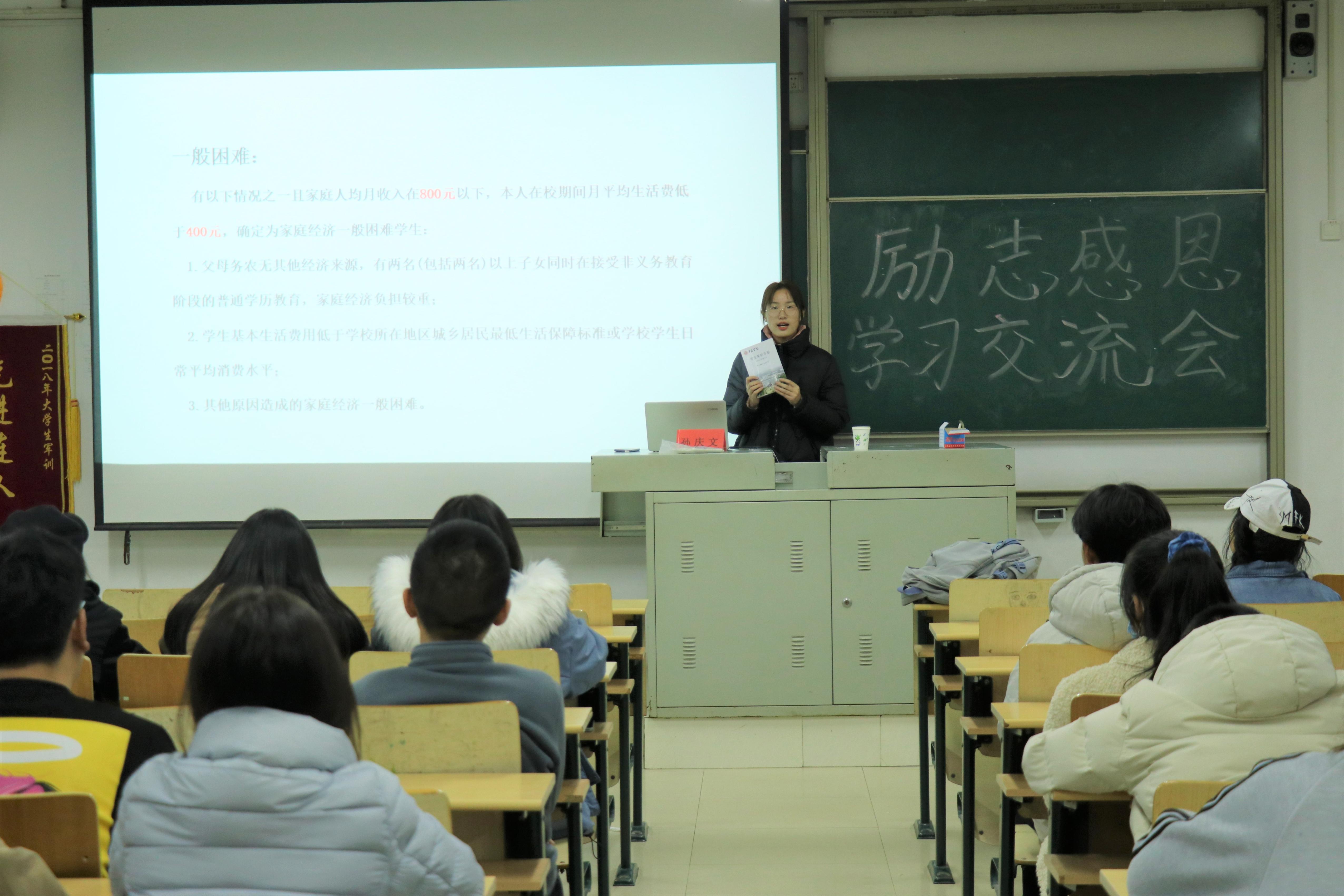 为进一步培养学生的感恩意识,激励学生励志成才,使学生对国家资助政策有更深的了解,BBIN宝盈集团于11月22日晚在理工楼2204教室举办了资助政策宣讲暨感恩励志教育,此次会议由学院资助政策宣讲团担任主讲,18级、19级、20级家庭困难学生参加此次会议。